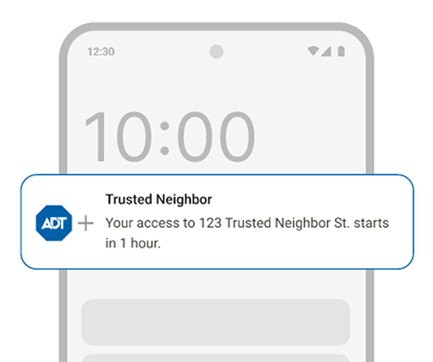 Trusted Neighbor§ is a new ADT service that lets you grant secure, temporary access to your home through the ADT+ app, providing real-time alerts, video clips and a full history view. It helps give you peace of mind and is the latest example of our commitment to empowering you to protect and connect what matters most.